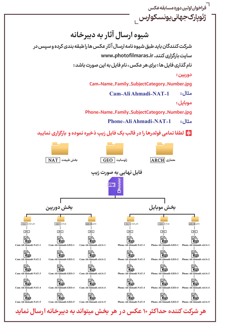 لطفا طبق شیوه نامه زیر عکس های خود را طبقه بندی نموده و بارگزاری نمایید